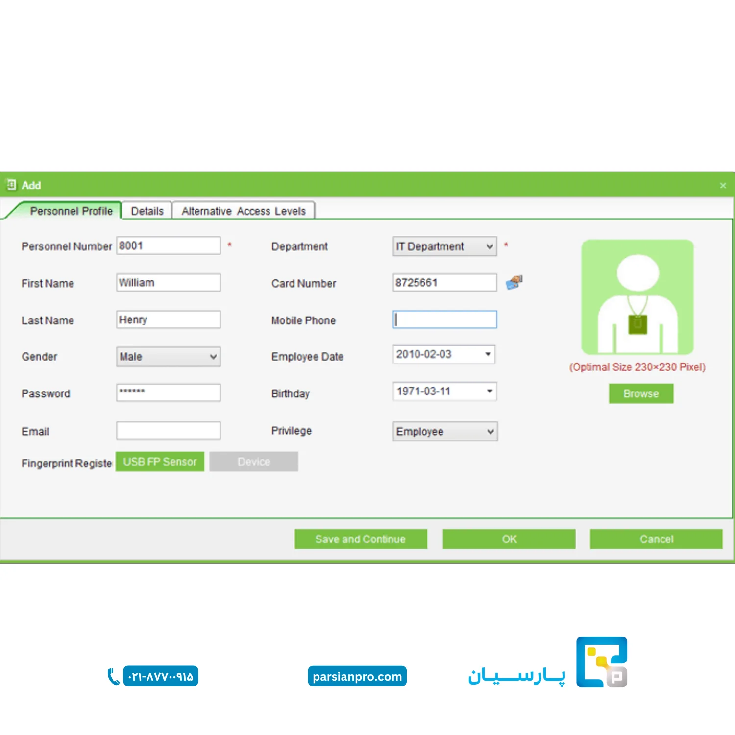 نرم افزار اکسس کنترل تحت ویندوز با عملکردی منحصر به فرد ، عالی ، بینظیر و ساختاری فوق العاده با توجه به نیاز مشتری بعد از چندین دهه تلاش و بررسی و با دو نوع بانک اطلاعاتی(MS-SQLSERVER-ACCSESS) در دسترس می باشد.